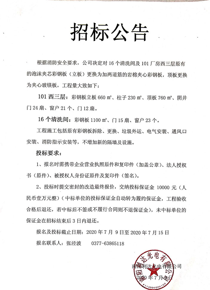 泡沫夾芯彩鋼板招標(biāo)公告