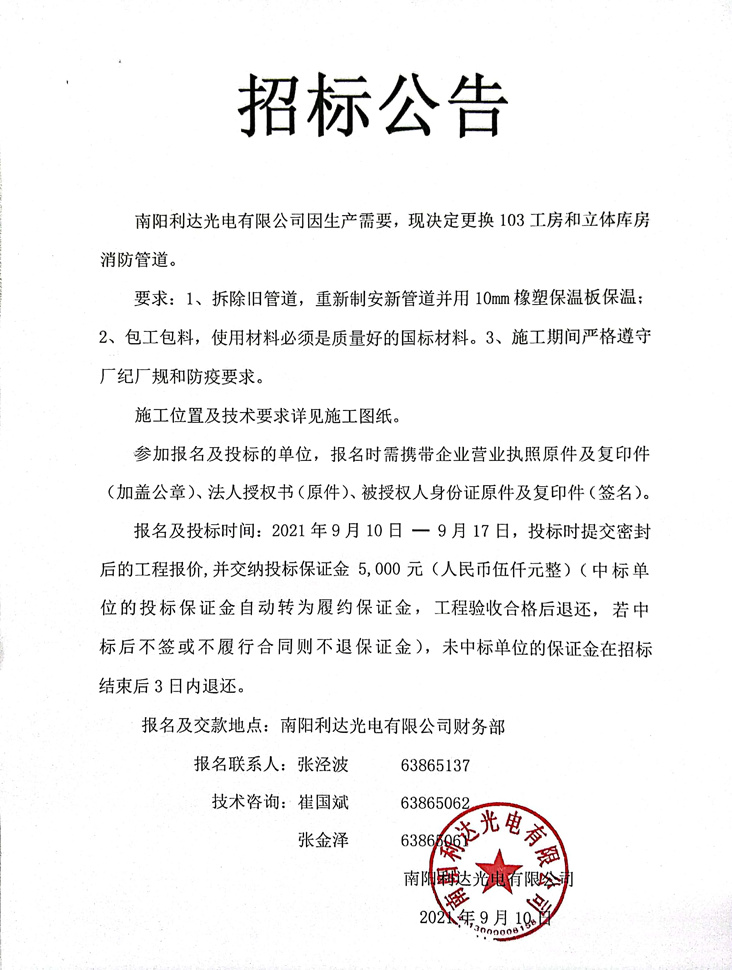 - (2022-09-29)光電新區(qū)三期廠房一層裝修施工的招標公告